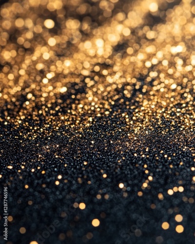 Wall mural : Shimmering gold glitter on a dark surface creating a bokeh effect for a luxurious and festive backgr