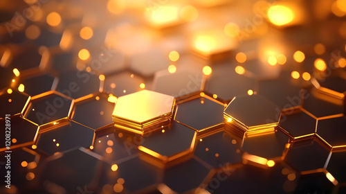 Shimmering golden hexagonal abstract background with bokeh light effects : generative aiWall mural
