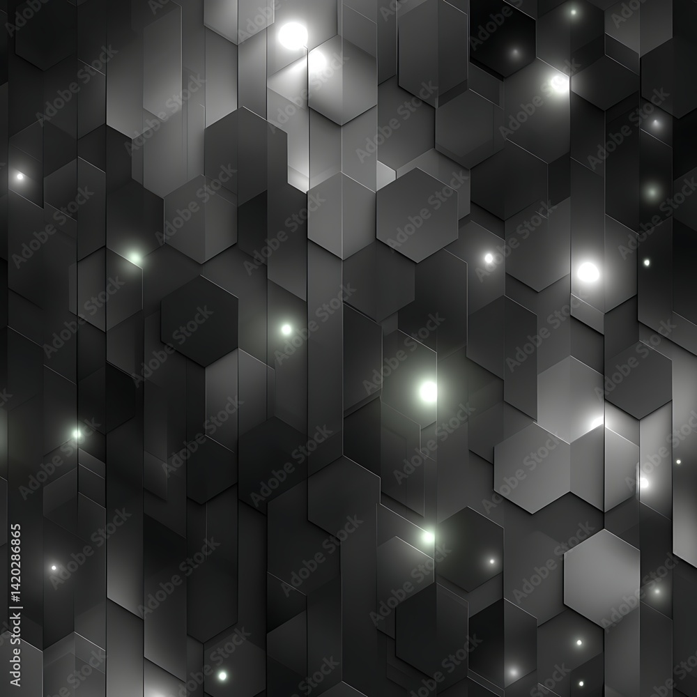Shimmering graphite hexagonal tile arrangement with abstract geometric design and light highlightsWall mural