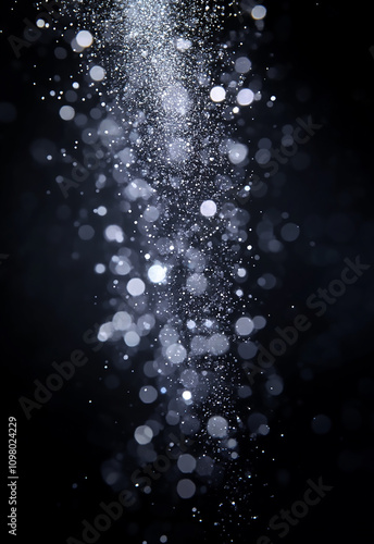 Wall mural shimmering silver sparkles on a dark background create a mesmerizing texture. soft blue lights creat