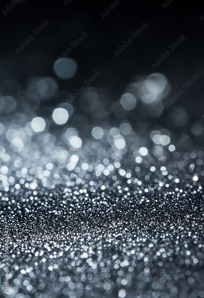 Wall mural : Shimmering silver sparkles on a dark background create a mesmerizing texture - soft blue lights creat
