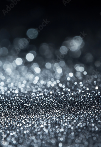 Wall mural shimmering silver sparkles on a dark background create a mesmerizing texture. soft blue lights creat