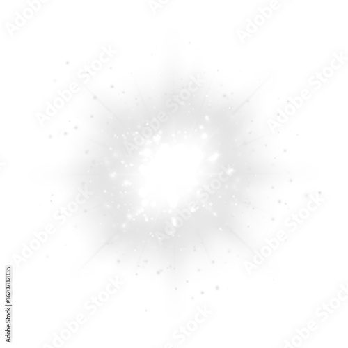 Shinig star with glitter particles isolated on transparent background with rays and beams - Wall mural