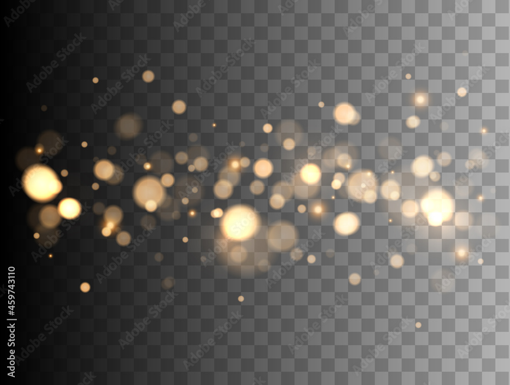 Wall mural : Shining bokeh isolated on transparent background - golden bokeh lights with glowing particles isolate