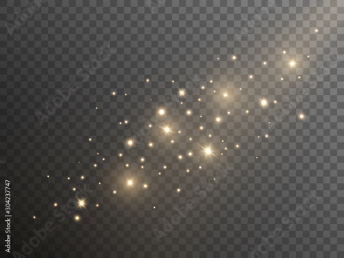 The watermark will not be included on Wall mural.: Shining gold dust on transparent background - christmas magic lights template - abstract golden sparks