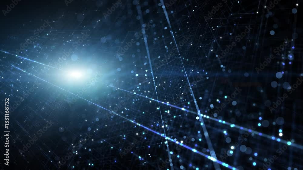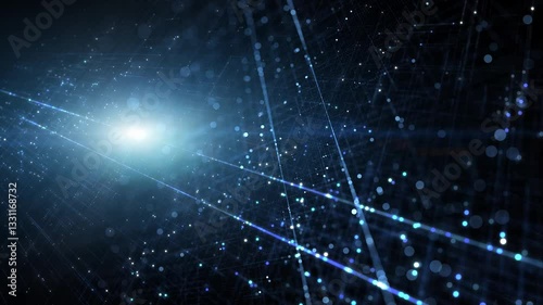 Wall mural : Shiny abstract digital technology network lines and dots loop copy space motion background -