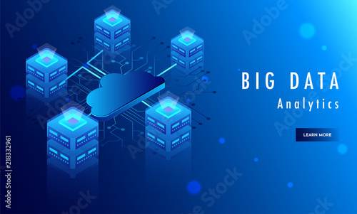 Wall mural shiny blue responsive web template with isometric illustration of local server connected with cloud  - Wall murals Wall mural shiny blue responsive web template with isometric illustration of local server connected with cloud - Wall murals
