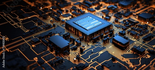 Wall mural shiny circuit board with style of luminous 3d objects, dark gold and light azure. generate ai image - Wall murals Wall mural shiny circuit board with style of luminous 3d objects, dark gold and light azure. generate ai image - Wall murals