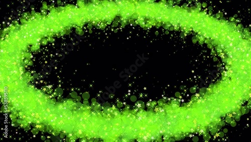 Wall mural shiny green circle and star bubbles spreading elliptically on a 4k transparent background with an al