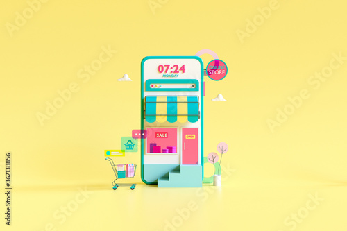 Wall mural shopping on-line online store on website mobile application 3d rendering.