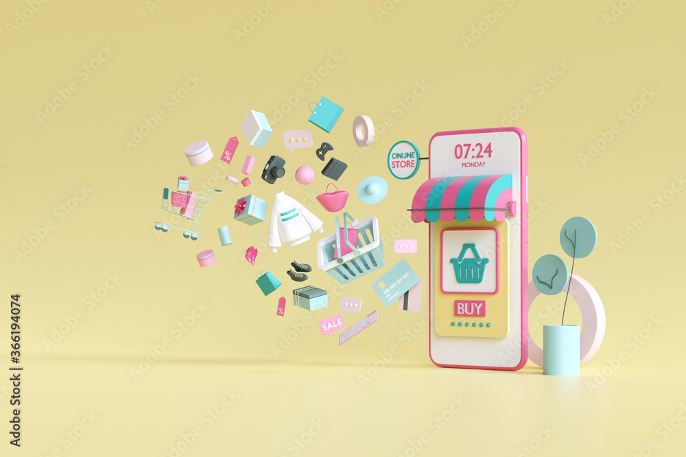 The watermark will not be included on Wall mural.: Shopping on-line online store on website mobile application 3d rendering -