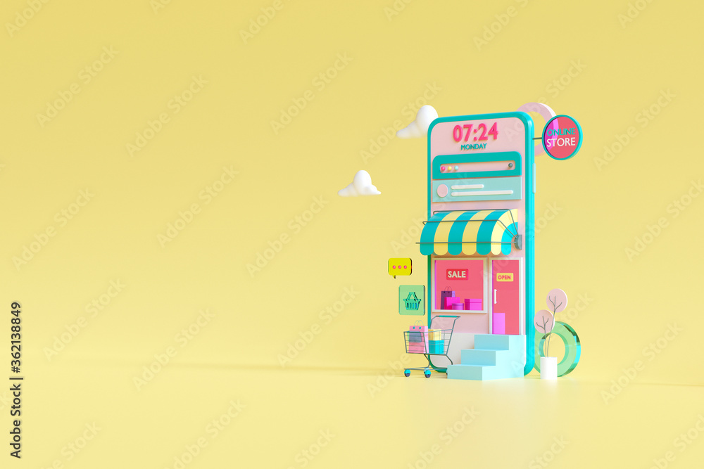The watermark will not be included on Wall mural.: Shopping on-line online store on website mobile application 3d rendering -