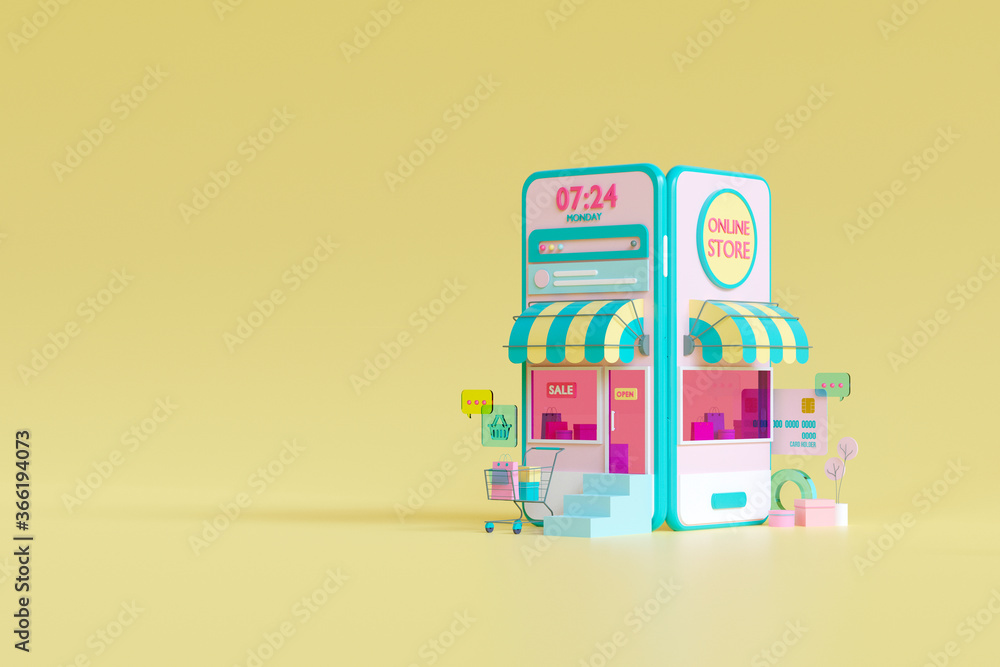 The watermark will not be included on Wall mural.: Shopping on-line online store on website mobile application 3d rendering -