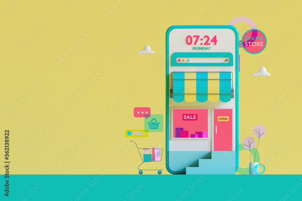 The watermark will not be included on Wall mural.: Shopping on-line online store on website mobile application 3d rendering -
