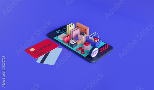 The watermark will not be included on Wall mural.: Shopping on-line - online store on website or mobile application - 3d rendering background - digital ma
