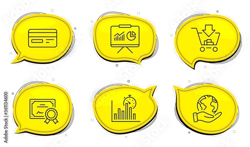 Wall mural : Shopping sign - diploma certificate, save planet chat bubbles - presentation, report timer and credit
