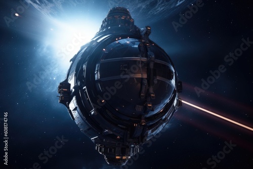 Wall mural shot of a futuristic spacecraft in space, created with generative ai