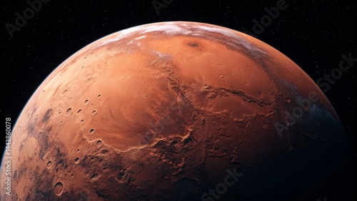 Wall mural showcasing the curved surface of mars with light illuminating its terrain, emphasizing its unique, h - Wall murals Wall mural showcasing the curved surface of mars with light illuminating its terrain, emphasizing its unique, h - Wall murals