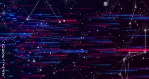 Wall mural showing digital network connecting nodes flowing across cyberspace, with neon streaks and particles - Wall murals Wall mural showing digital network connecting nodes flowing across cyberspace, with neon streaks and particles - Wall murals