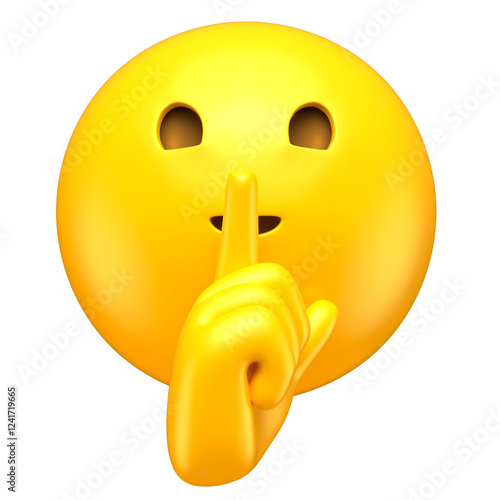 Wall mural shushing emoji with finger gesture in 3d render with transparent background