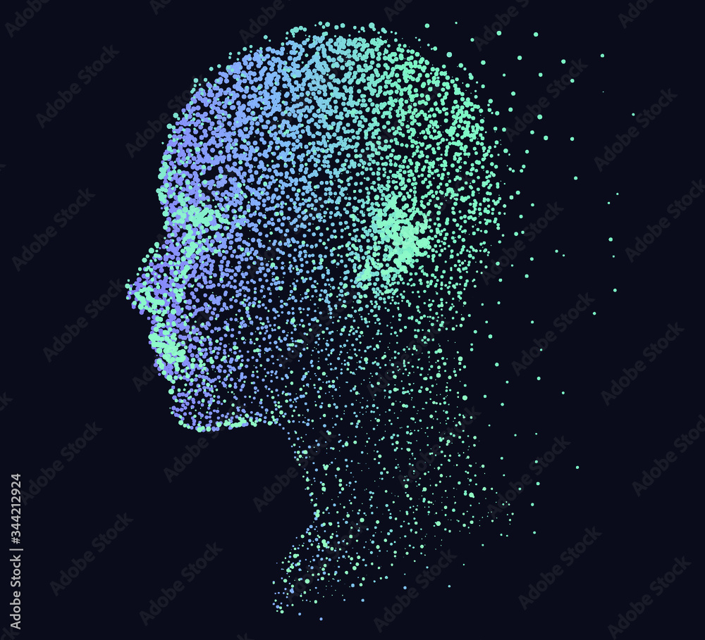 Wall mural silhouette of a human head made of dots and particles. conceptual image of ai (artificial intelligen - Wall murals Wall mural silhouette of a human head made of dots and particles. conceptual image of ai (artificial intelligen - Wall murals