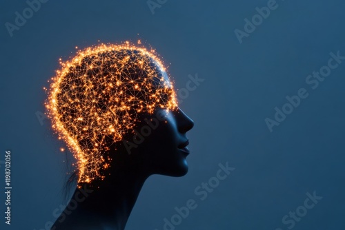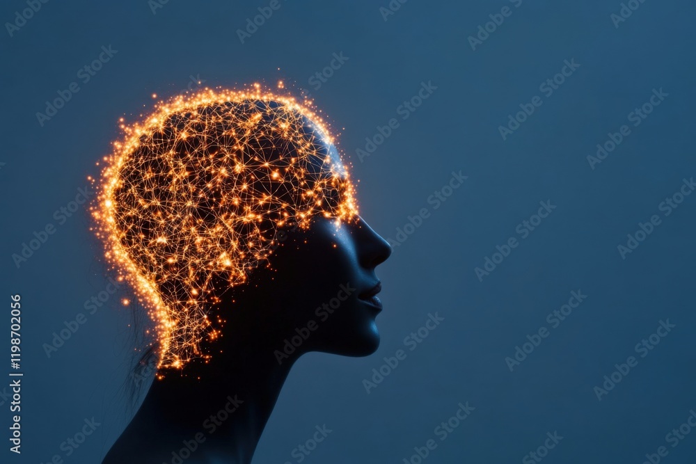 The watermark will not be included on Wall mural.: Silhouette of a person's head with a network of glowing lines and dots representing artificial intel