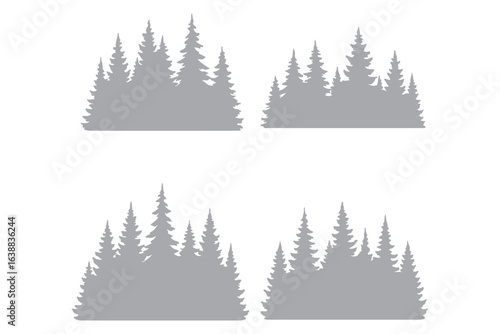 The watermark will not be included on Wall mural.: Silhouette of forest of christmas fir trees vector icon set illustration isolated on white backgroun