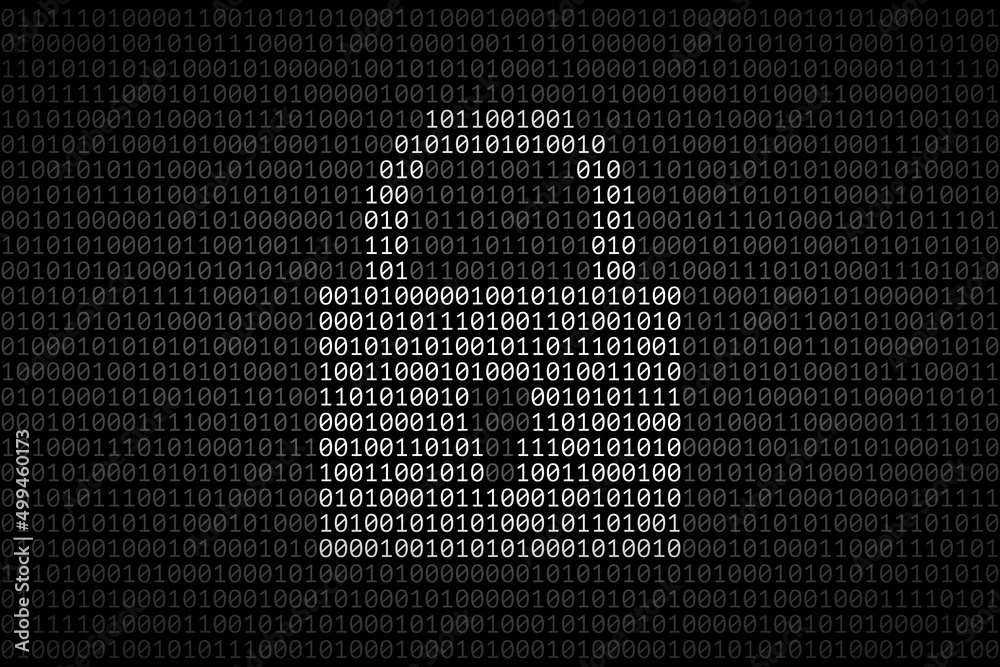 Wall mural silhouette of padlock made from zeros and ones over dark binary code