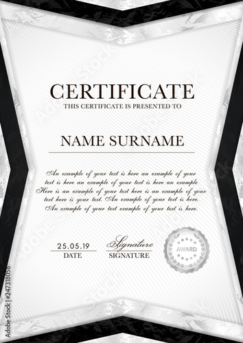Wall mural : Silver certificate template with line guilloche background pattern (watermark), geometry frame and s