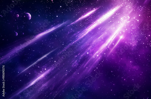 The watermark will not be included on Wall mural.: Silver comets darting across a deep purple sky: celestial phenomena illustrated