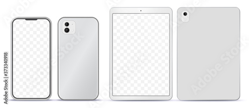Wall mural : Silver mobile phone and tablet computer mockup with front and back side view -