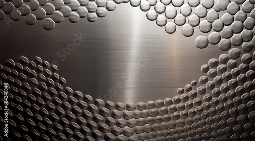 The watermark will not be included on Wall mural.: Silver spherical droplets create a reflective, elegant pattern on a smooth metallic surface -
