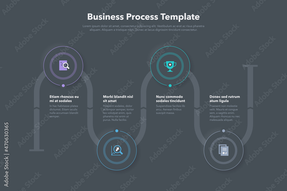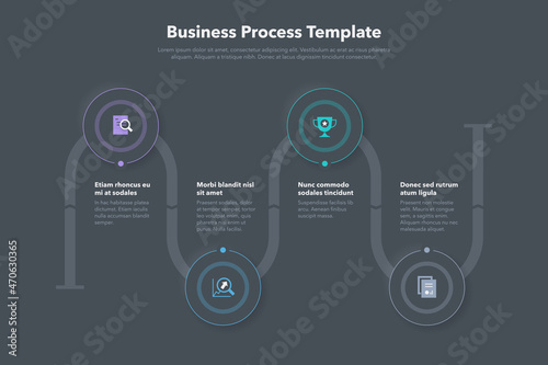 Wall mural : Simple business process template with four steps - dark version - easy to use for your website or pre