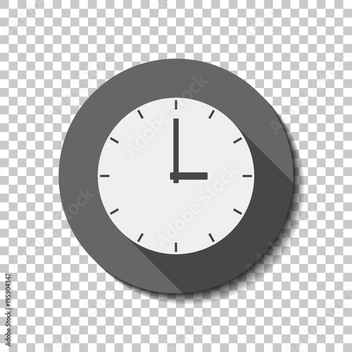 Wall mural simple clock icon. white flat icon with long shadow in circle on transparent background