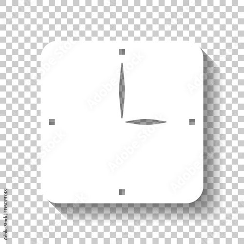Wall mural simple clock icon. white icon with shadow on transparent background
