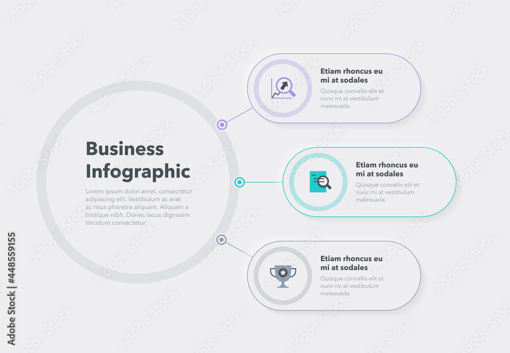The watermark will not be included on Wall mural.: Simple concept for business diagram with three colourful steps and place for your description - flat