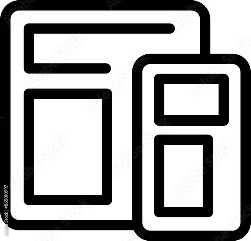 The watermark will not be included on Wall mural.: Simple icon of web design process, showing layout on computer and mobile phone