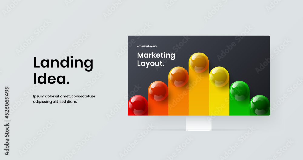 Simple landing page design vector layout - clean computer monitor mockup web banner concept - Wall mural