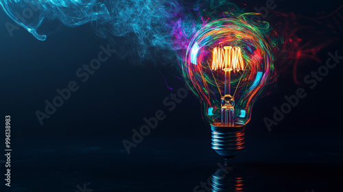 Wall mural : Simple light bulb with swirling colorful lines around it, creating vibrant and dynamic visual effect
