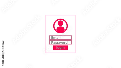 Wall mural : Simple login interface design with icon email and password fields and login button red color 4k illu