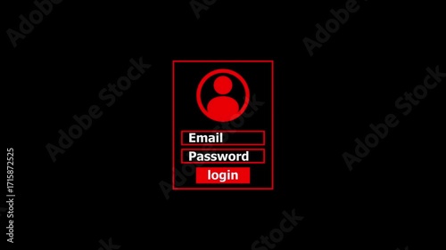 - Wall murals Wall mural Simple login interface design with icon email and password fields and login button red color animation. black background 4k video. - Wall murals