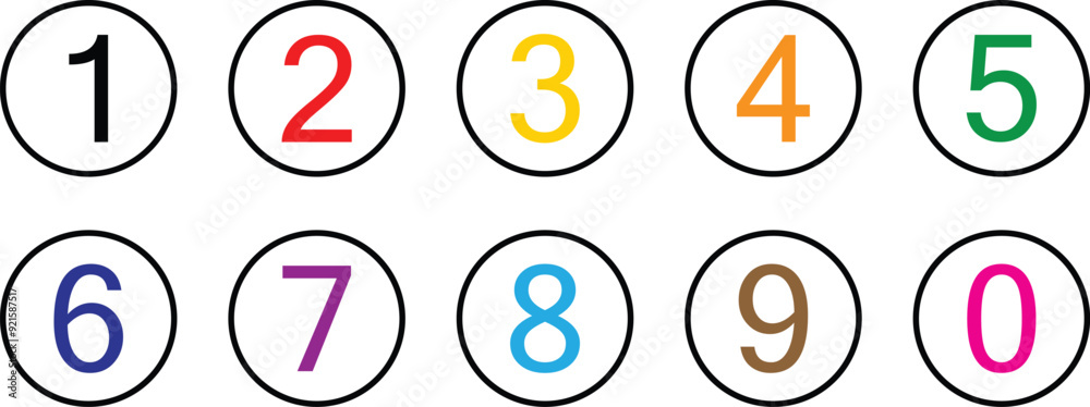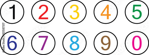 The watermark will not be included on Wall mural.: Simple round numbers icon set of 0 to 9 - number on outline circle vector illustration -
