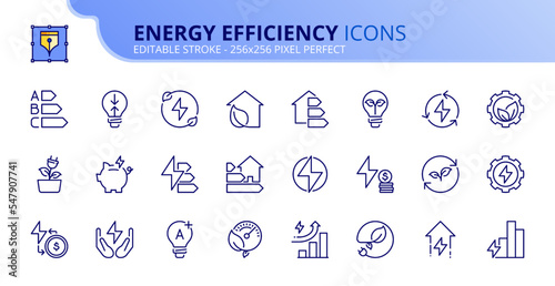 Wall mural : Simple set of outline icons about energy efficiency and saving - sustainable development -
