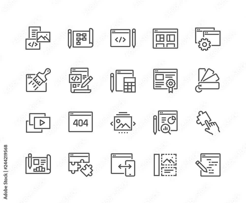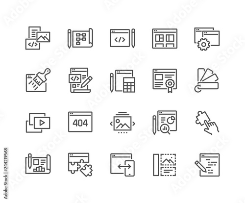 Simple set of web development related vector line icons - contains such icons as content, image galleWall mural