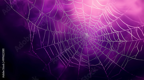 The watermark will not be included on Wall mural.: Simple spider web with thin white lines over purple background in eerie design for website backgroun