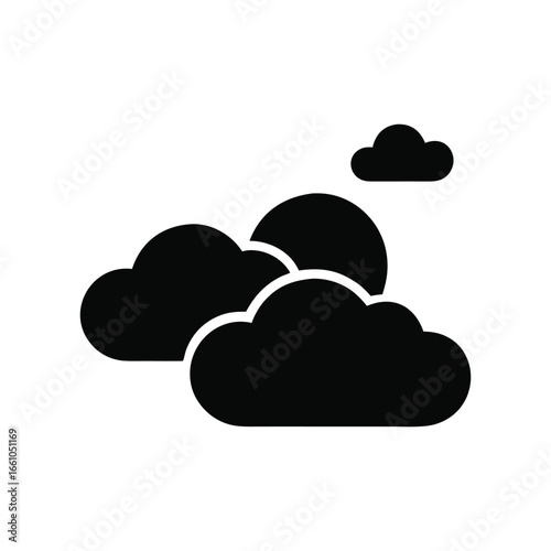 Wall mural : Simple weather icon with clouds and sun shining black silhouette on white background representing ov
