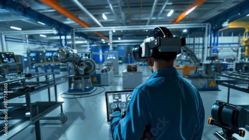 Wall mural simulate prototype products with 3d printing. smart factory through virtual factory tour technology.