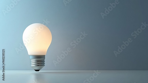 Single ai-powered energy-efficient light bulb on a clean white surface, minimal scene with ample blaWall mural