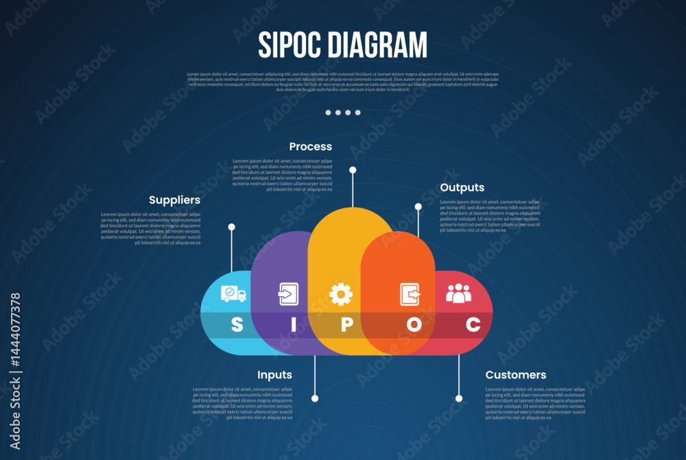 Wall mural : Sipoc diagram analysis infographic template with creative cloud shape and line pointing direction da