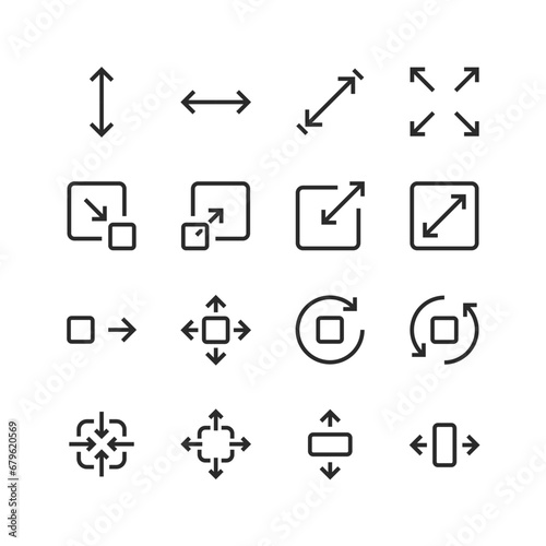 Wall mural : Size icons set - measurement and resizing - height, width, depth - displays the dimensions of objects -